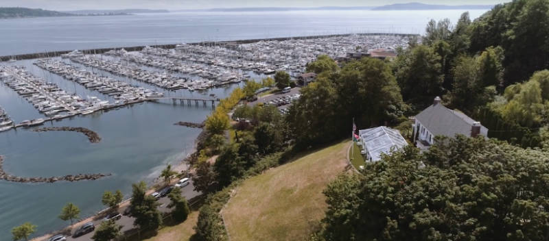 Secluded on nearly four acres on the SE corner of Magnolia, the Admirals House overlooks Elliott Bay and boasts an unobstructed view of the Seattle city skyline, including the iconic Space Needle and the majestic Mt. Rainier.